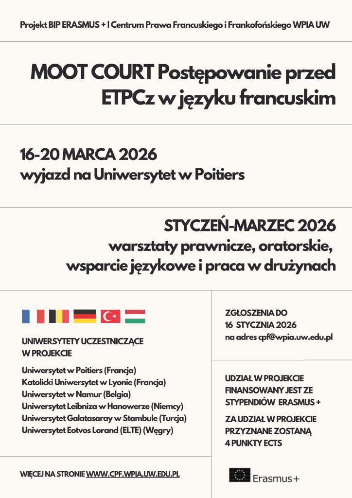 - 14.01.2026 -17.15-18.15 – sala 105 – Collegium Iuridicum I; 18.30-20.00 – sala 206 – Collegium Iuridicum I